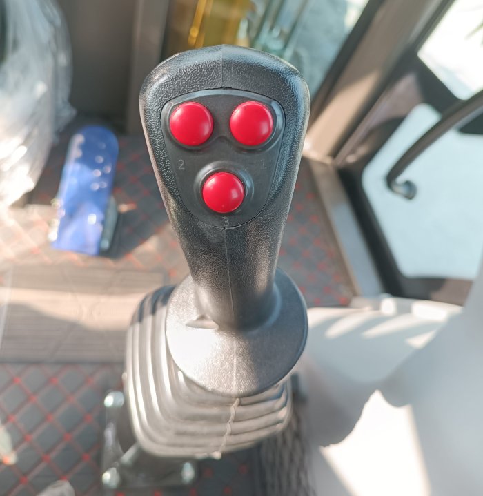 El joystick integrado permite un control suave y preciso de las funciones de excavación y dirección.
