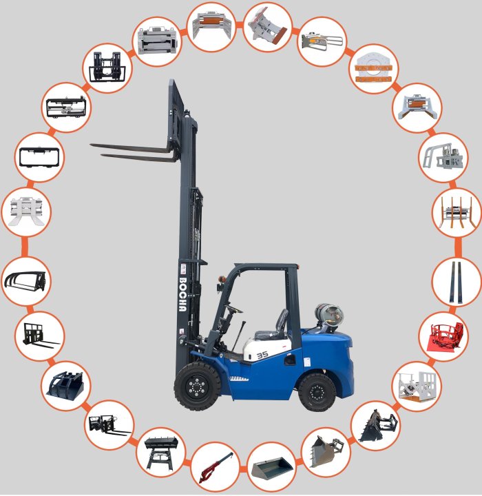 Motores, altura de elevación, neumáticos, horquillas, accesorios, etc., personalizados para satisfacer las necesidades de los clientes.